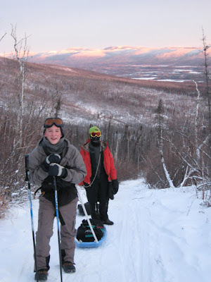 It was a chilly weekend in Fairbanks with temperatures hovering between 20 and 30 below zero F. An invigorating bite to the air, the eternal frost covering the landscape, and the subtle pastels of the mid-winter sky made it all too alluring for me to head out of town to a cozy cabin tucked back in the White Mountains north of Fairbanks. Dan, Sky and I skied out under a star filled sky Fri evening with our headlamps illuminating our way.